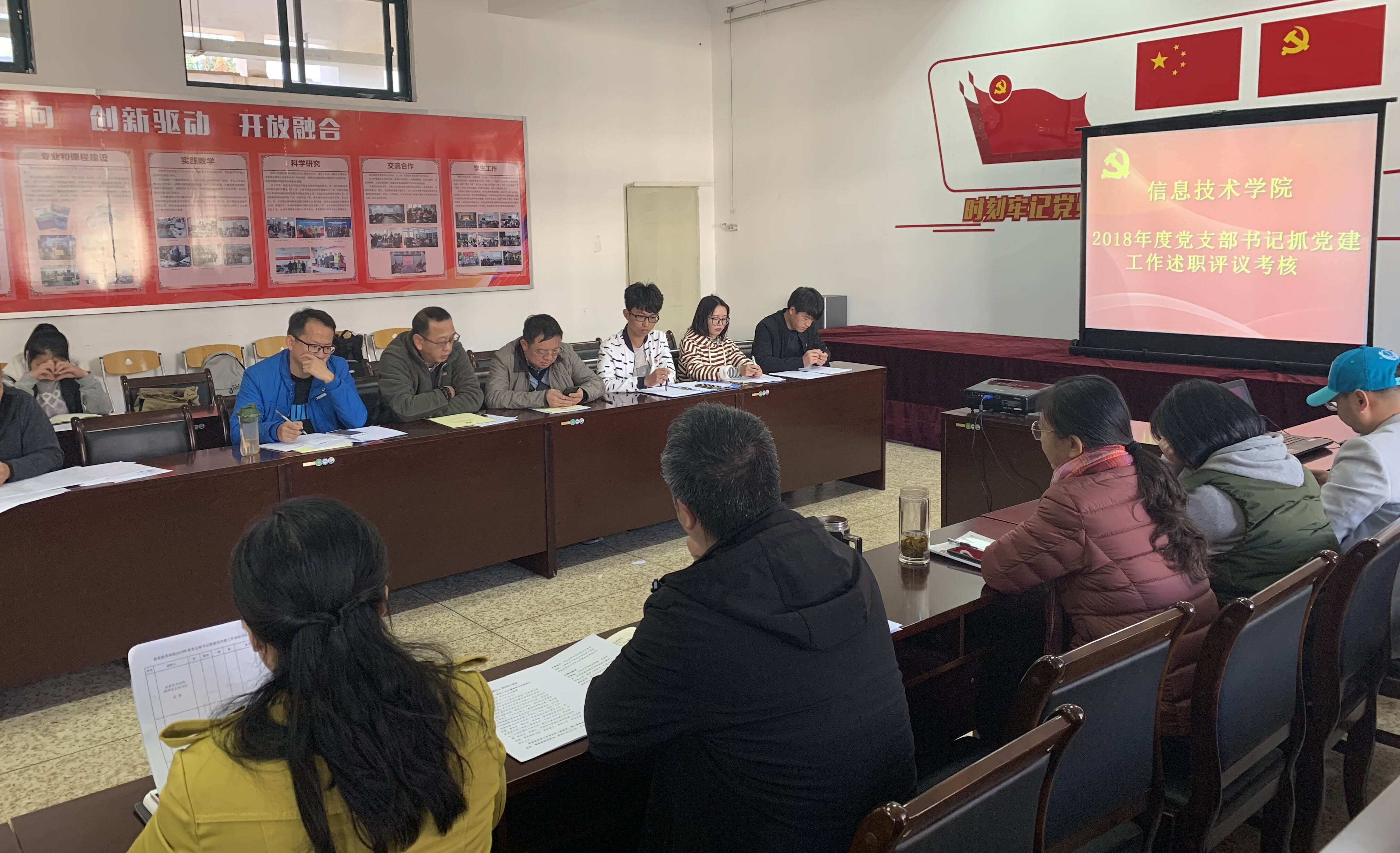 12月5日,信息技术学院在惟实楼3201举行2018年度党支部书记抓党建工作述职评议考核会议。信息技术学院党总支书记陶军,副书记、院长刘渝妍,副书记李凯佳,总支委员、各支部书记、支委和师生党员代表近30余人参加会议。