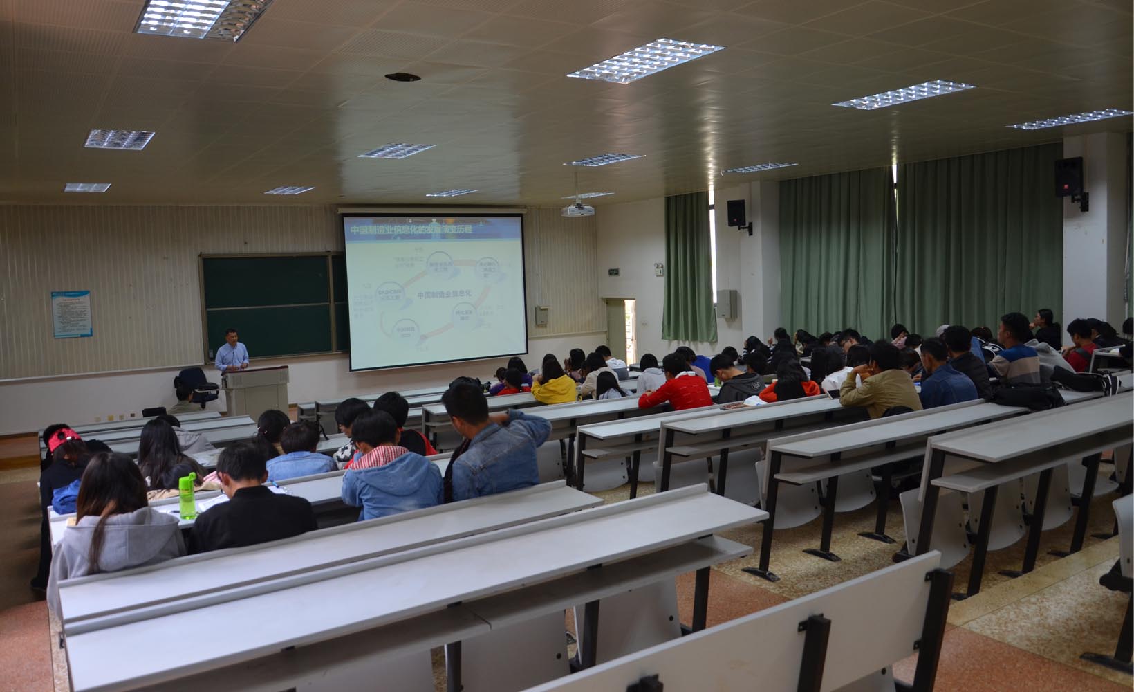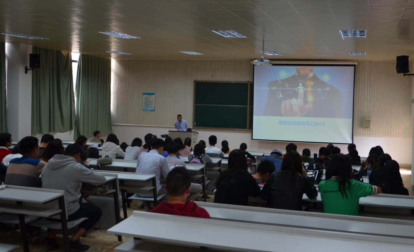 3月26日,信息技术学院邀请云内动力正高级工程师李毅明老师,在惟实楼5102开展了“制造业信息化与工业4.0”的专题讲座。参加此次讲座的有15级的全体同学。
