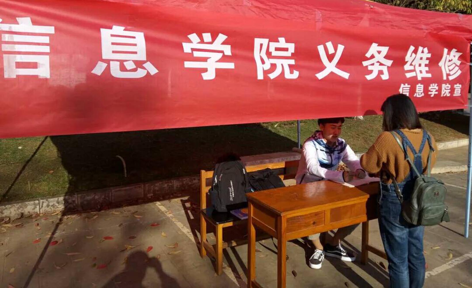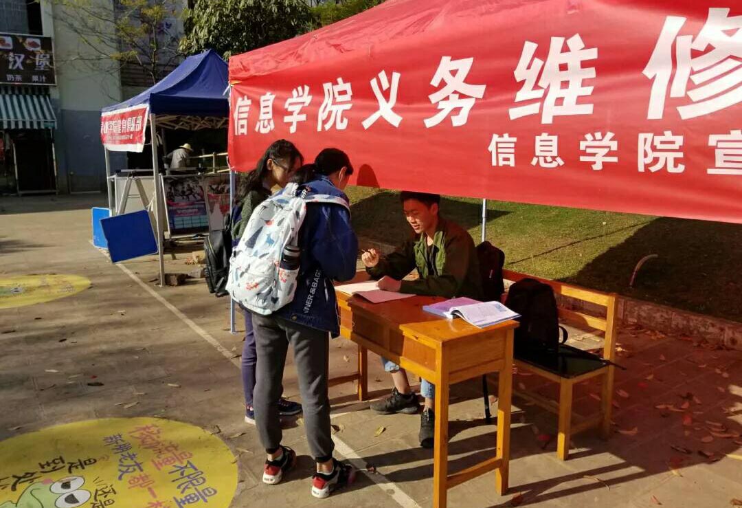 2018年3月19日,为了丰富新时期“学雷锋”活动的内涵和形式,以实际行动响应“向雷锋同志学习”的号召,使雷锋精神深入师生心中,信息技术学院在润泽苑食堂门口开展了“维机四服,别浪”学雷锋义务电脑维修活动。