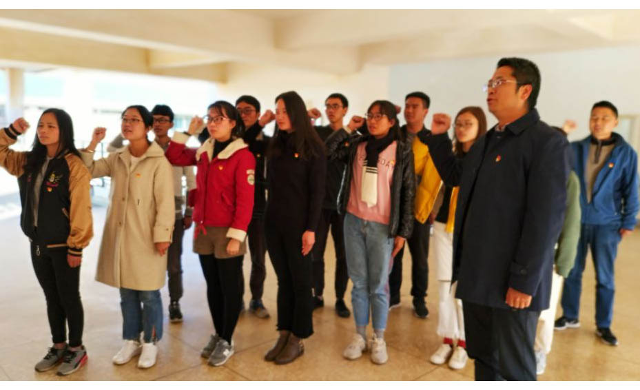 12月27日,按照党员发展工作要求,信息技术学院党总支组织学生第一党支部和学生二支部2018年下半年新发展的预备党员,举行了庄严而神圣的入党宣誓活动。党总支书记陶军、党总支副书记李凯佳、学生一支部书记岳维好、学生二支部书记杨冬奎、副书记罗华东参加活动。