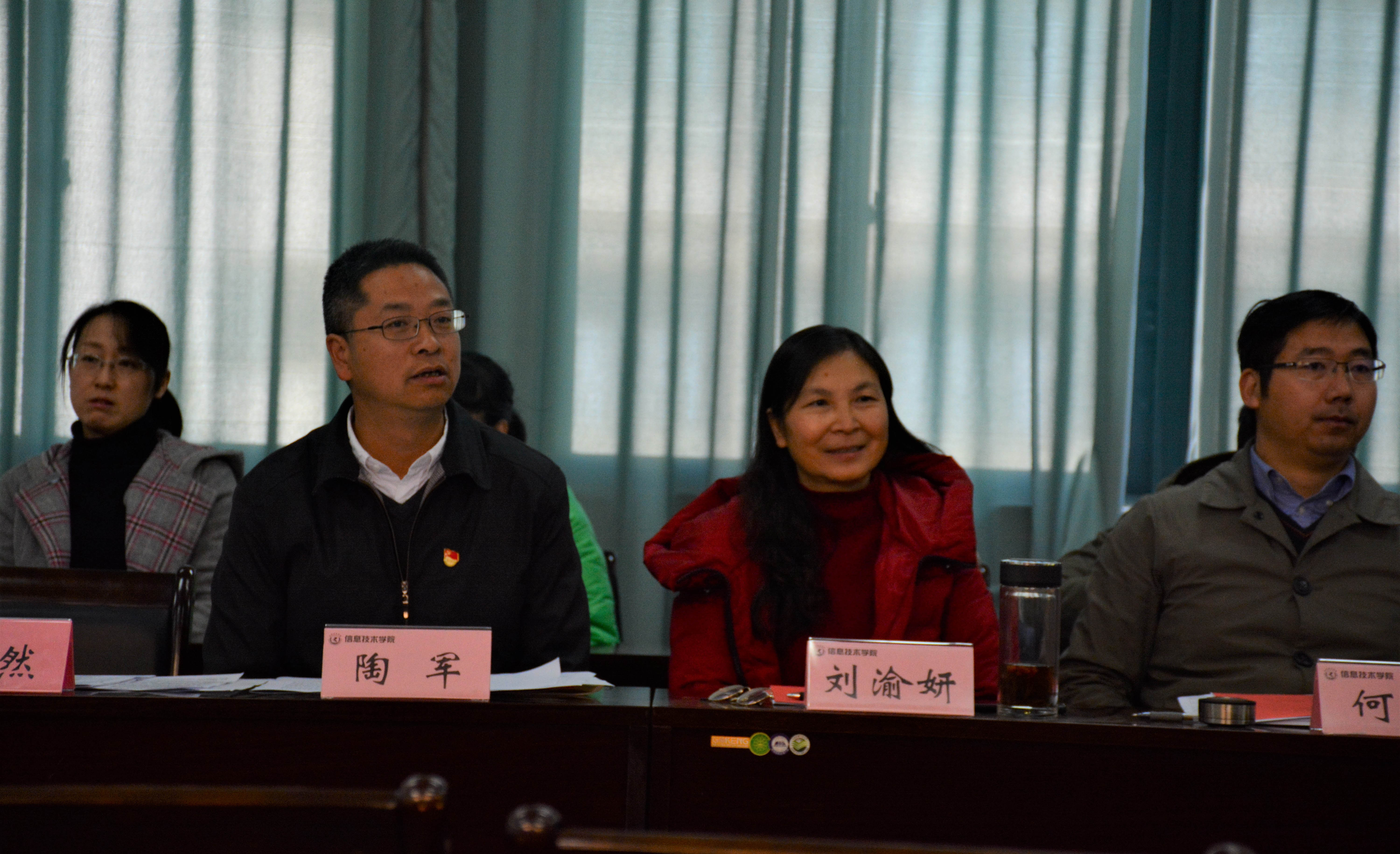 1月11日,信息技术学院在惟实楼3201会议室召开一届五次教代会,学校工会干部杨然老师出席会议,信息技术学院领导班子、全体教代会代表及教职工共39人参加会议,会议由学院党总支书记陶军主持。