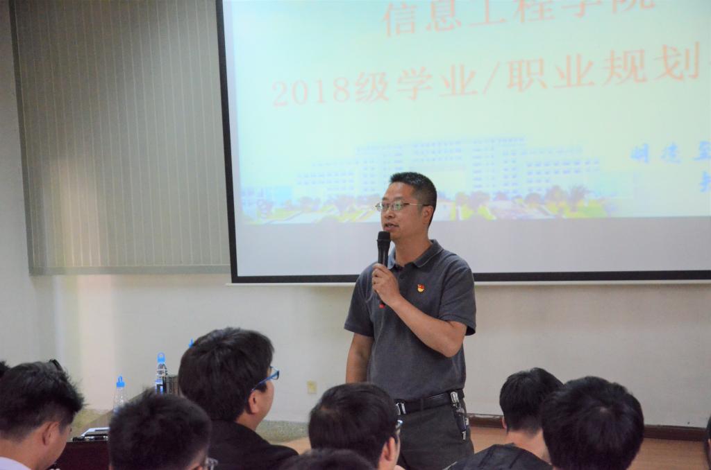 4月19日,为了帮助大一新生正确认识自己,做好学业(职业)规划,树立正确的成才观和发展观。信息工程学院在博识楼1003楼隆重举行2018级大学生学业/职业规划大赛。学院党总支书记陶军、院长刘渝妍、副院长何俊、各教研室主任、18级各班班主任、全体辅导员以及18级全体同学近250余人参加活动。