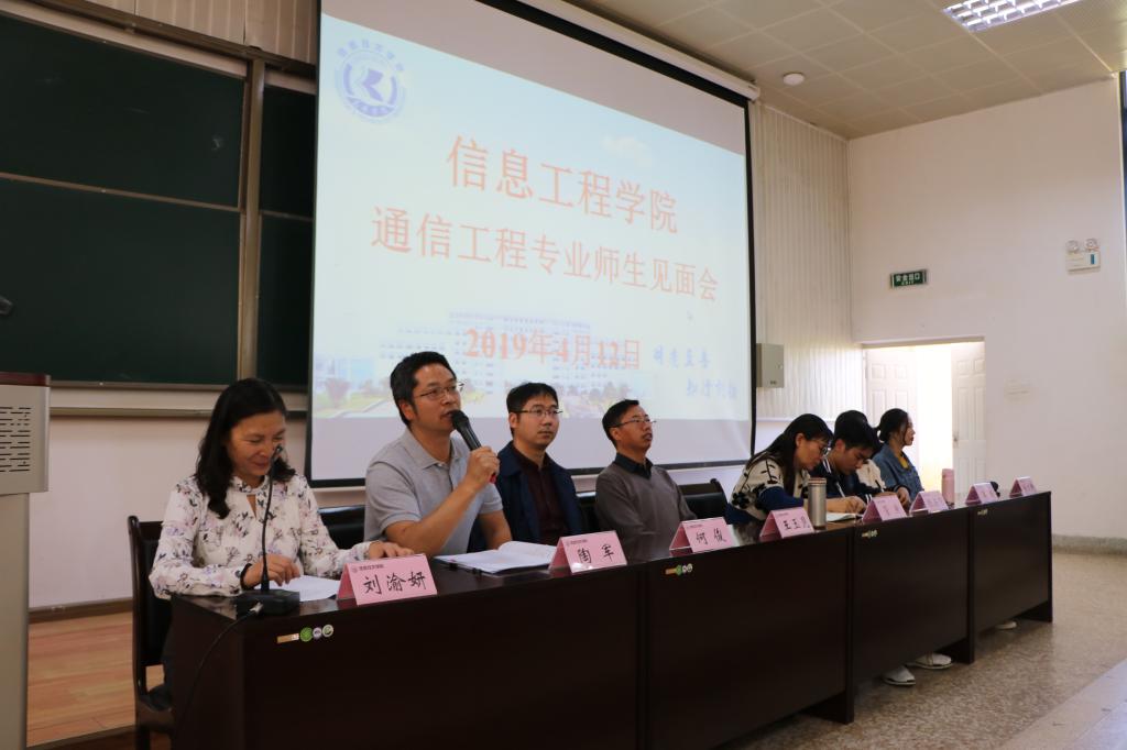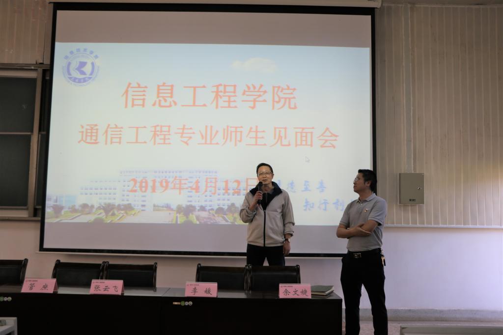 4月12日,信息工程学院通信工程专业师生见面会在惟实楼5102隆重举行。信息工程学院党总支书记陶军、院长刘渝妍以及副院长何俊出席见面会,全体辅导员、通信工程专业老师以及通信工程专业的全体学生参加会议,会议由党总支书记陶军主持。