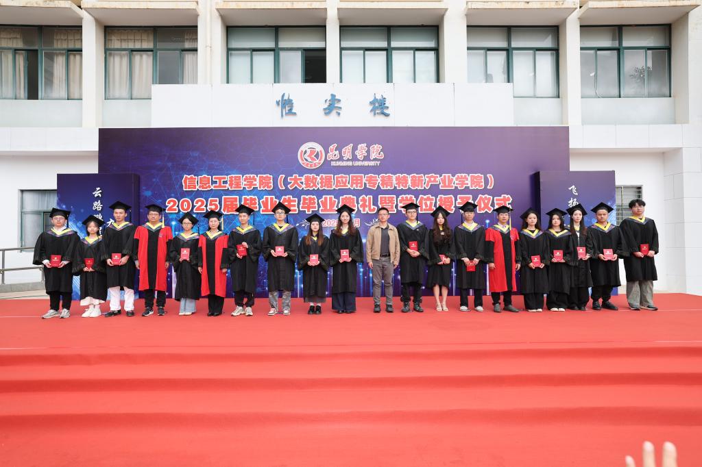 6月26日,信息工程学院(大数据应用专精特新产业学院)在惟实楼举行2025届毕业典礼暨学位授予仪式,2025届全体毕业生、2022级学生代表参加仪式,学院全体党政班子、银龄教师、教职工代表出席仪式。仪式由党委副书记李徽主持。